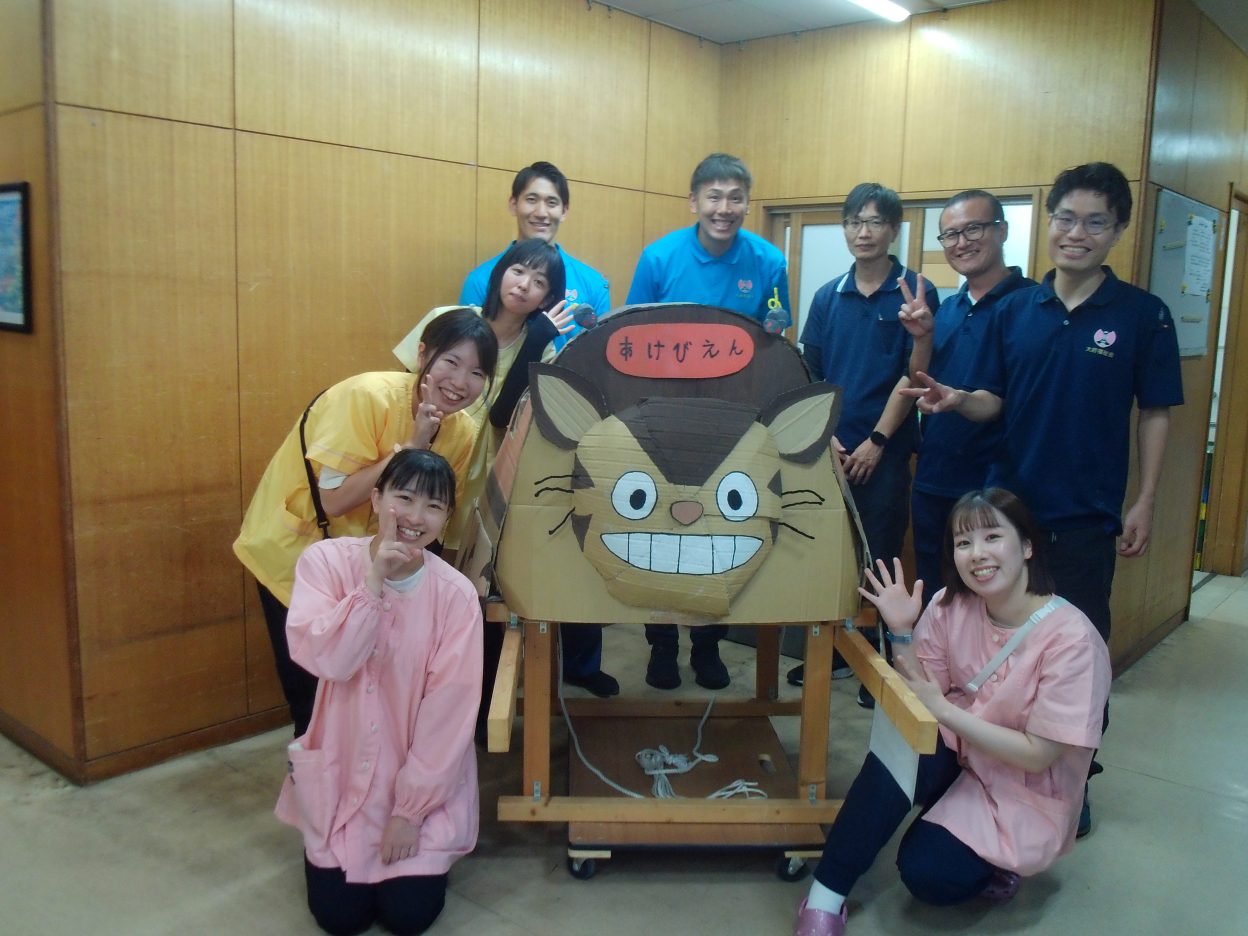 あけび苑ではワッフルとクレープの模擬店、利用者さんの作品展、射的…などたくさんのコーナーが出店されました。模擬店やゲームのコーナーでは利用者さんたちがお客さんの呼び込み、昨年も大好評だったネコバスみこしの練り歩きでは盛り上げなどで大活躍でした🤗💫