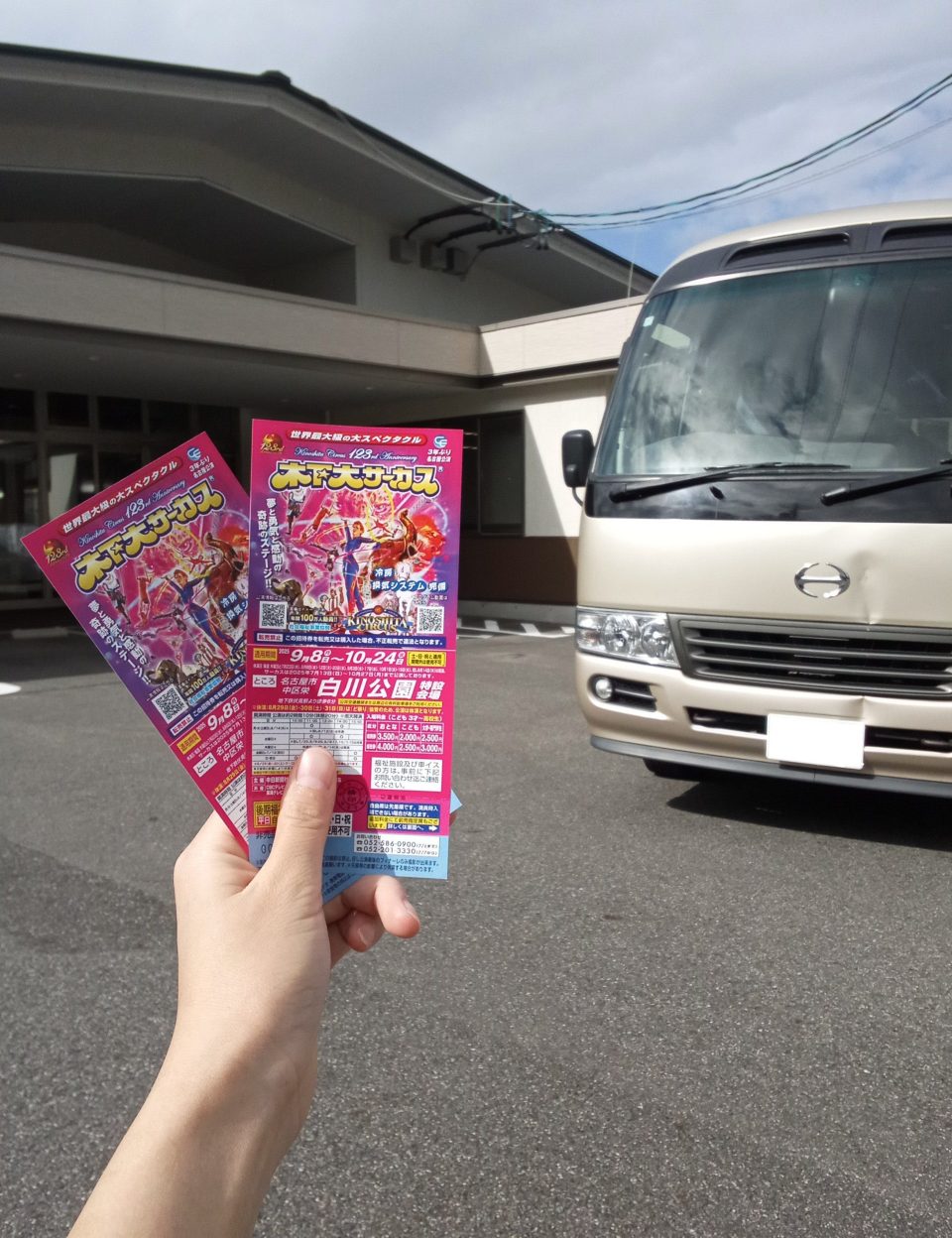当日はみのりっこや保護者の方々とでバスに乗り、サーカス会場へ出発!🚌