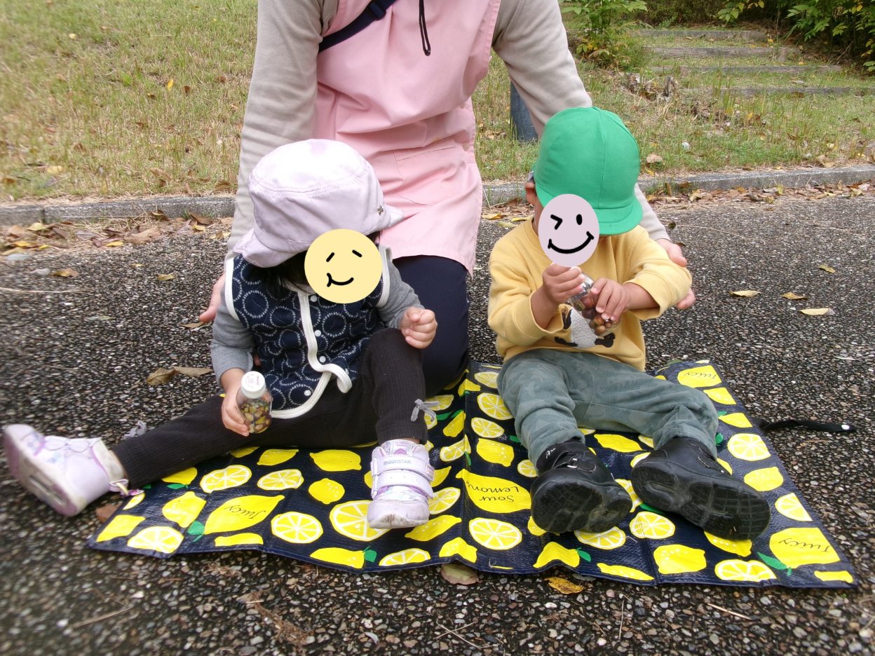拾ったどんぐりを空容器に入れてマラカスを作り、みんなで「どんぐりころころ」を大合唱しました♪