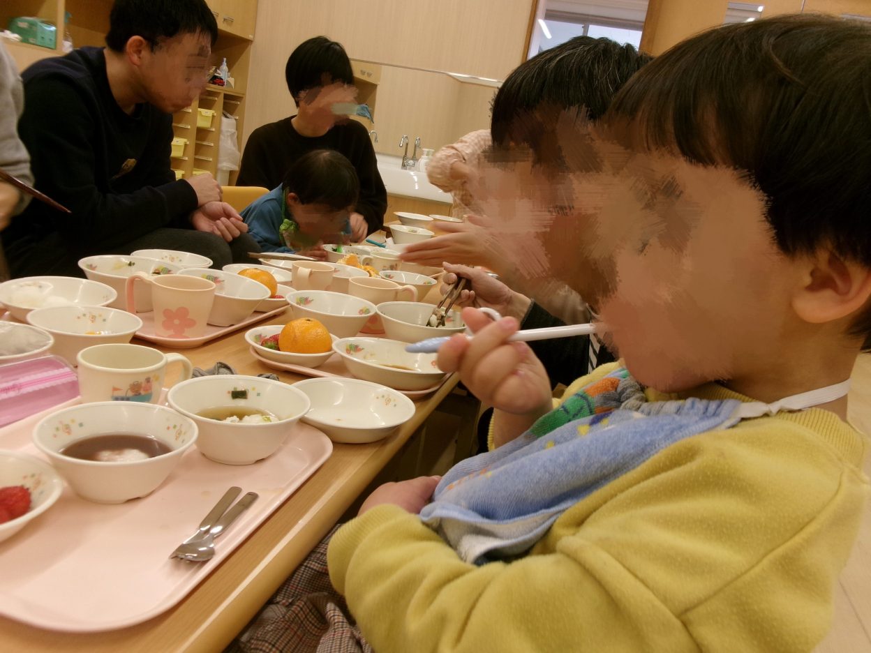 丸めたおもちは、お給食の時間にお雑煮やお汁粉、お醤油など色々な食べ方で楽しみました☺