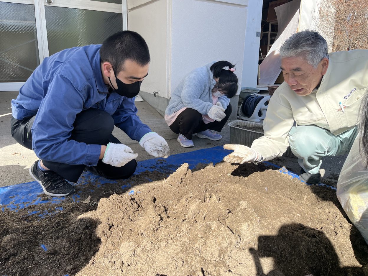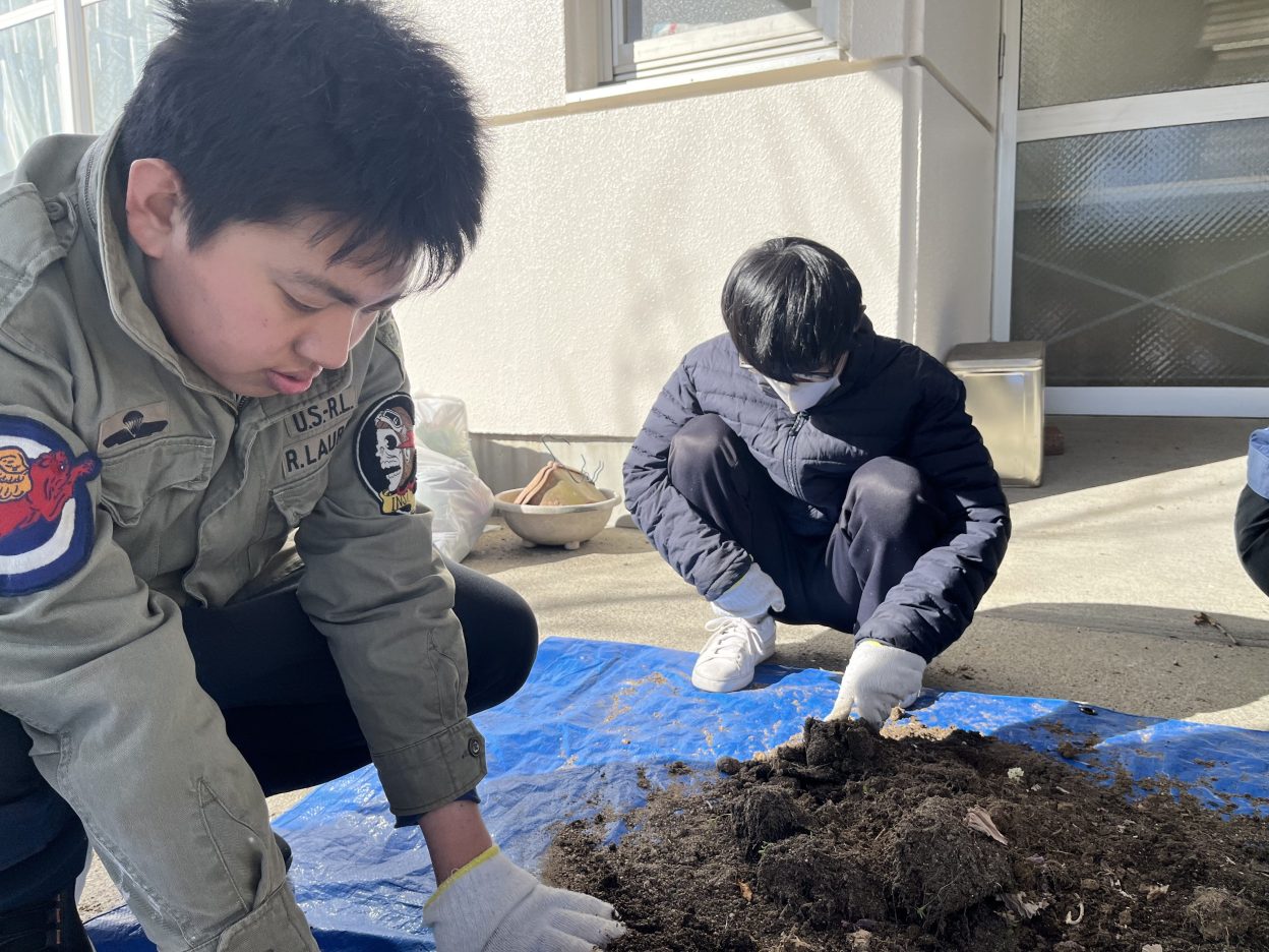 ほぐしている土の中から出てくる虫にビックリしたり、土のふかふかな感触やにおいを感じたり...。
