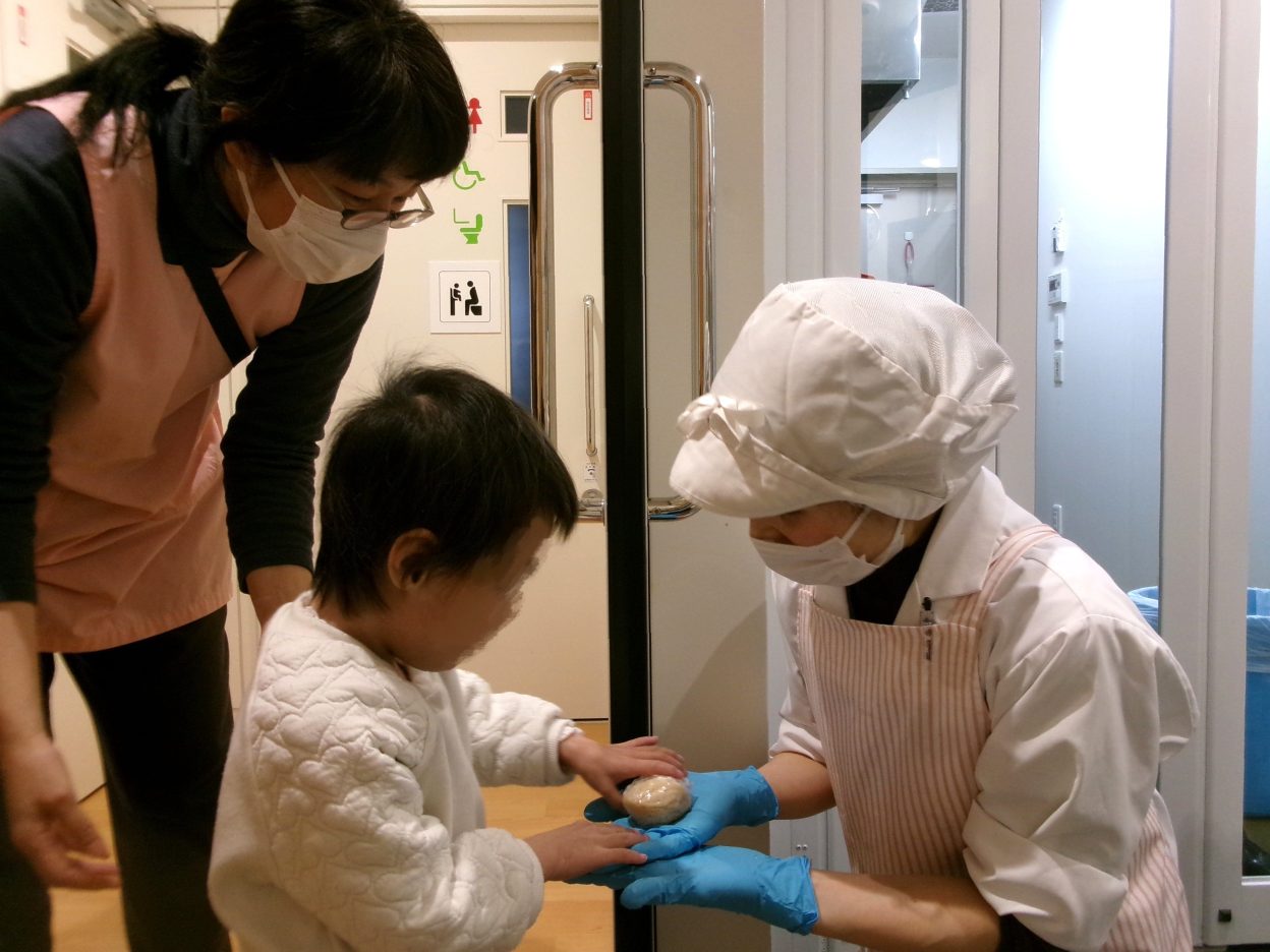 米粉やお砂糖が入った袋を、ふるふると振ったりもみもみしたりしてクッキング!