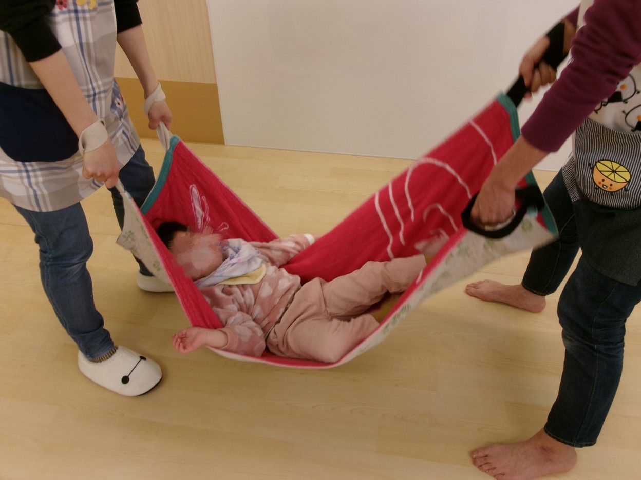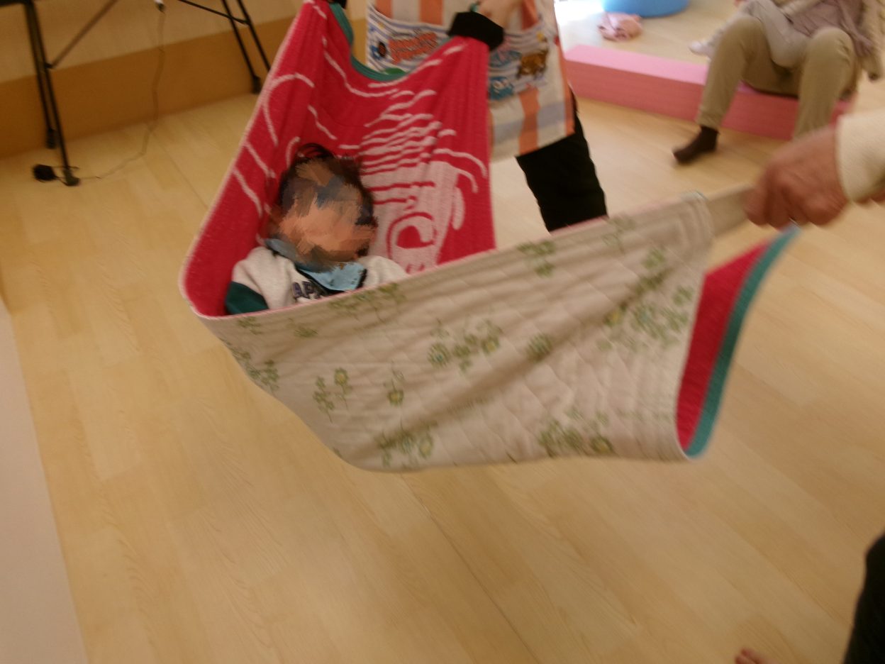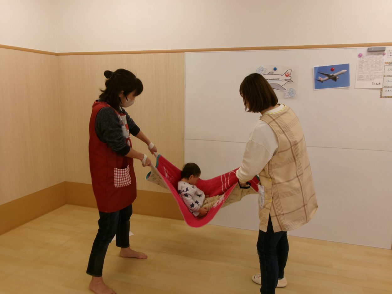 今週の活動は、タオルブランコを飛行機に見立てたごっこ遊びをしました!