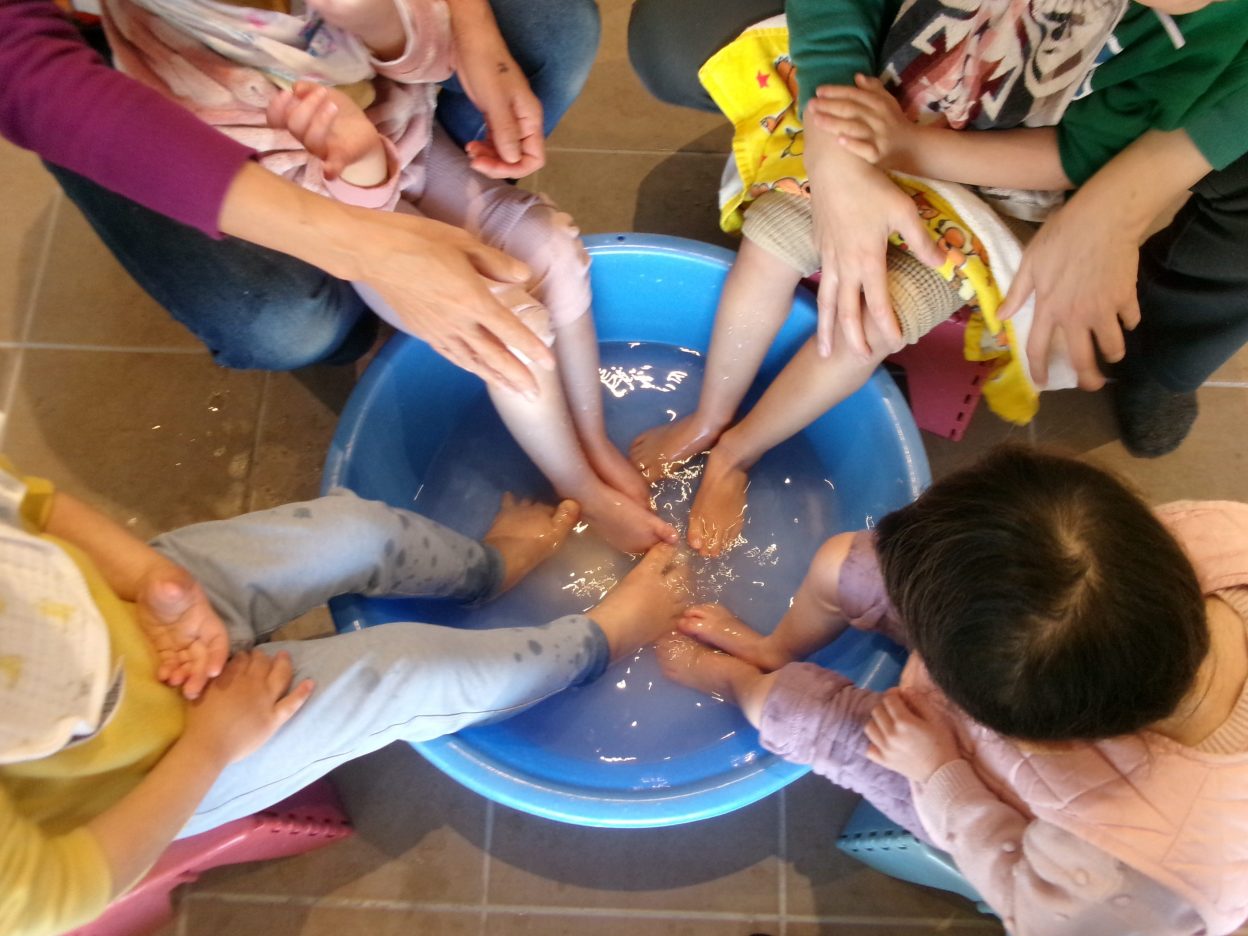 ほかほか温か~い足湯に、みんなとってもいい気持ち…♡
