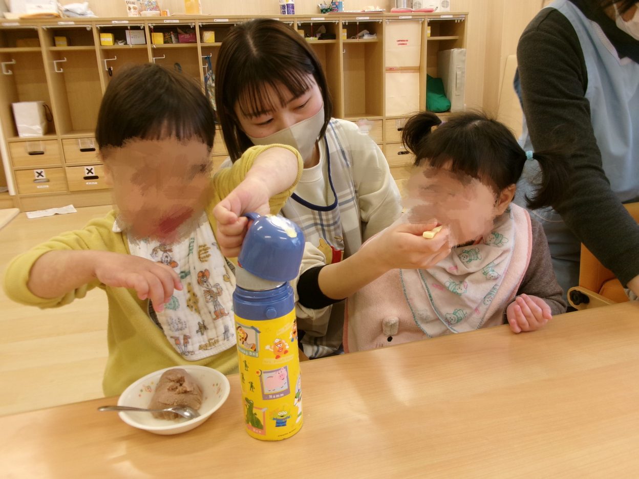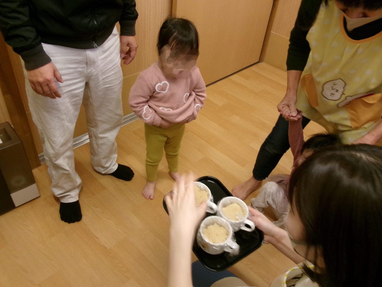 紙芝居や絵本を読んでいると、甘~い匂いとともにほかほかのカップケーキが出来上がりました✨